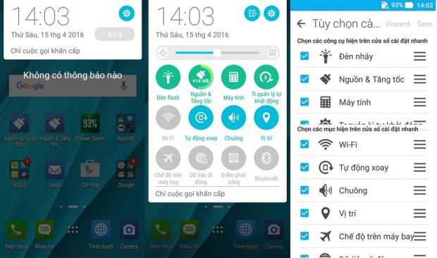 Về chức năng, Asus sử dụng khá nhiều các thao tác cử chỉ trên giao diện này. Ví dụ truy cập hoặc khóa nhanh màn hình với double Tap, hay vẽ các chữ cái để mở một ứng dụng nào đó... Chỉ cần vuốt từ dưới lên là có thể xem được danh sách tùy biến màn hình hoặc trên xuống để có thể tìm kiếm nhanh bất cứ ứng dụng hay một file nào có trên điện thoại. Rất tiện lợi đúng không.