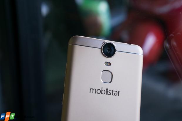 Ở giữa là nơi đặt logo Mobiistar, di chuyển xuống một chút là tên máy cùng dòng chữ 4G/LTE. Cuối cùng, bạn sẽ nhìn thấy 3 chấu nhỏ có màu vàng, giúp thiết bị kết nối với ốp lưng để đem đến khả năng sạc không dây.