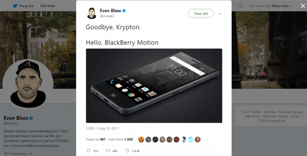 Tuy nhiên, mới đây, chuyên gia rò rỉ Evan Blass đã đăng một Tweet trên Twitter: 'Tạm biệt Krypton, và chào đón một chiếc smartphone BlackBerry cảm ứng toàn màn hình mới.'