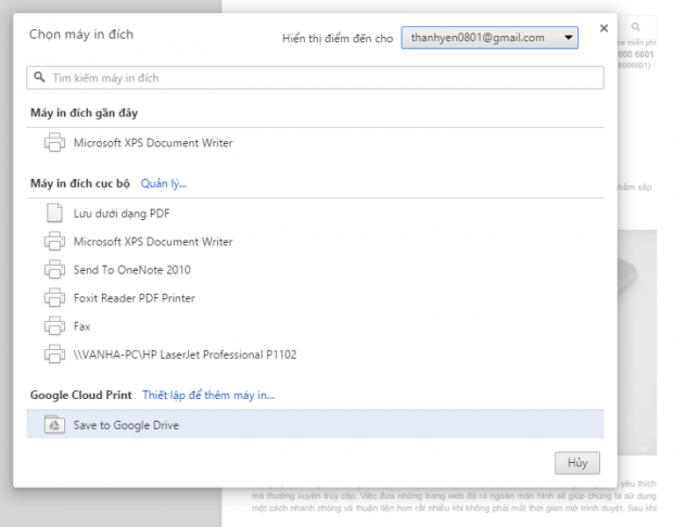 Nếu bạn đang sử dụng trình duyệt Microsoft Edge hay một trình duyệt khác, cách làm sẽ là chọn in dưới dạng flie PDF (Print to PDF) và lưu nó trong mục Drive của bạn.