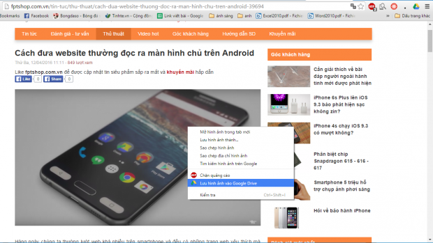 Với tiện ích mở rộng trên Chrome có tên là “Save to Google Drive”, việc lưu hình ảnh hay video trở nên dễ dàng hơn. Đơn giản chỉ là bấm chuột phải vào hình ảnh, tài liệu cần lưu và chọn “Lưu vào Google Drive”