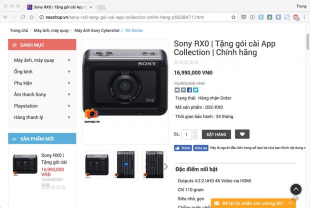 Tại Mỹ, RX0 có giá bán khoảng 700 USD nên mức giá ở Việt Nam cùng quà tặng đi kèm trong đợt pre-order có thể xem là rất hấp dẫn. RX0 là một chiếc máy ảnh rất đặc biệt nó đem lại chất lượng ảnh chụp với cảm biến 1' của dòng RX100 series cộng với khả năng quay phim Full HD hỗ trợ khung hình lên đến 960 fps trong một thiết kế nhỏ gọn và bền bỉ.