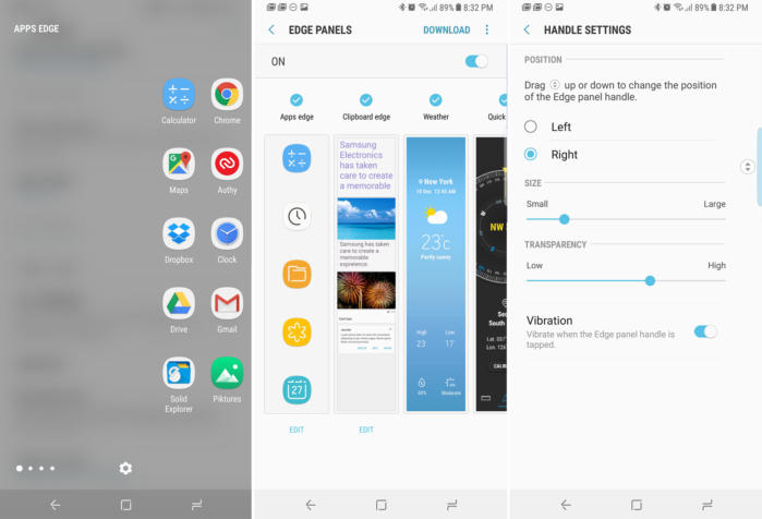 Cạnh phải màn hình là một thanh trong sốt, tập hợp các ứng dụng cho phép người dùng truy cập nhanh. Bạn có thể tùy chọn thêm, xóa ứng dụng hoặc thay đổi vị trí của thanh này bằng cách vào Settings/ Display/ Edge Screen/ Edge panels.