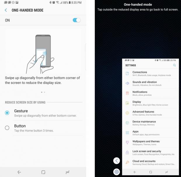 Galaxy Note 8 là một chiếc điện thoại lớn, vì vậy nó có thể được khó khăn để sử dụng bằng một tay. Tuy nhiên, có một tùy chọn cho chế độ một tay dưới phần Settings > Advanced Features > One-handed mode.