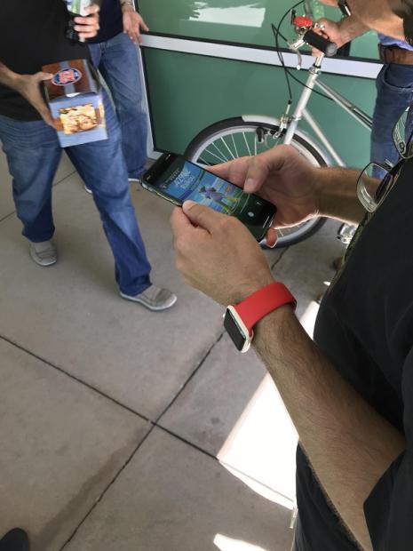 Trong bức ảnh xuất hiện lần này, các bạn sẽ thấy một nhân viên Apple đang chơi Pokemon Go trên iPhone X. Tuy nhiên chúng ta đừng quan tâm tới trò chơi mà hãy nhìn kỹ vào phần màn hình.