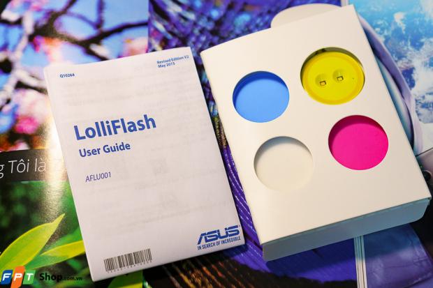 Đúng như tên gọi 'Lolli', phụ kiện flash gắn rời của ASUS sở hữu thiết kế gọn gàng, nhỏ nhắn, đầy màu sắc, tương tự những chiếc kẹo mút lollipop vậy. Xuất hiện lần đầu tiên tại CES 2015 diễn ra hồi năm ngoái, Lolliflash là một trợ thủ đắc lực để 'selfie' trên thiết bị di động hoặc đóng vai trò là một nguồn sáng phụ trong trường hợp bạn đang chụp ảnh trong điều kiện ánh sáng quá yếu.