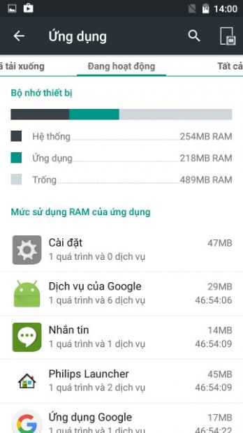 Khi chưa cài đặt thêm các ứng dụng chạy nền, dung lượng RAM của máy còn khoảng gần 500MB cho việc thực thi đa nhiệm.