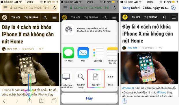 Tại trang web cần lưu trữ, bạn chọn vào biểu tượng Share > Tạo PDF.
