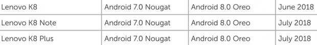 Đây là danh sách chính thức từ diễn đàn Support Lenovo, có thể thấy dòng K8 được Lenovo ưu tiên và hiện tại hãng đang trong quá trình phát triển bản Android 8.0 Oreo cho 3 thiết bị trên.