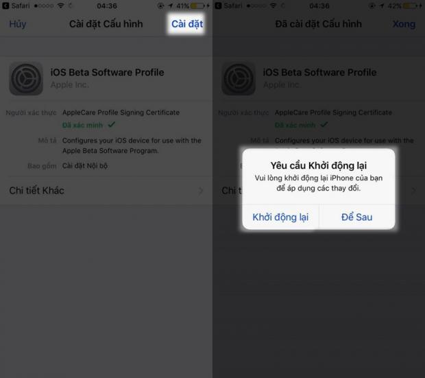 Bước 2: Mở file vừa tải về > Cài đặt > Khởi động lại. Sau khi hoàn tất bạn đã trở thành người dùng thử nghiệm (beta), tiếp đến truy cập vào: