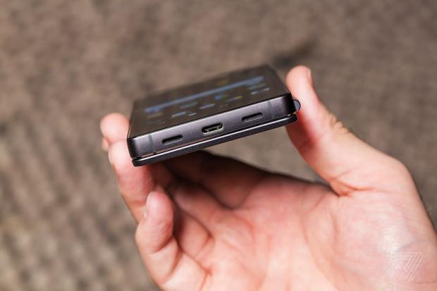 Trên tay ZTE Axon MĐây là ZTE Axon M, thoạt nhìn chiếc máy này giống như hai chiếc smartphone “song sinh” được ghép vào với nhau bằng một tấm bản lề. Tuy nhiên trên thực tế ZTE Axon M tập trung phần cứng vào một màn hình và phần màn hình còn lại rất mỏng, điều này giúp cho dù khi gập lại để sử dụng như một smartphone bình thường thì máy cũng không bị quá dày. Độ dày tổng thể ZTE Axon M là 12,1mm, con số có thể chấp nhận được.