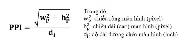 Mật độ điểm ảnh hay còn gọi là 'ppi' (pixels per inch) chính là lượng điểm ảnh tính trên 1 inch vuông. Công thức tính mật độ điểm ảnh bằng thương số của căn của bình phương chiều dài cộng bình phương chiều rộng (đơn vị pixel) với độ dài đường chéo màn hình (tính theo inch).