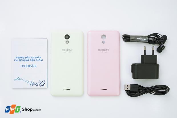 Sau khi mở hộp, bạn có thể lấy ra chiếc điện thoại Mobiistar LAI Yuna C cùng những phụ kiện đi kèm bao gồm cáp, sạc, tai nghe, sách hướng dẫn. Đặc biệt, nhà sản xuất còn tặng kèm 1 chiếc vỏ máy để người dùng tùy chọn thay thế.