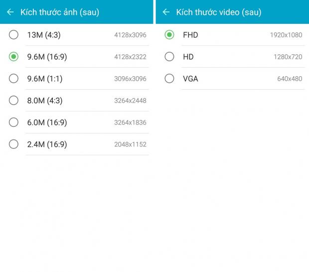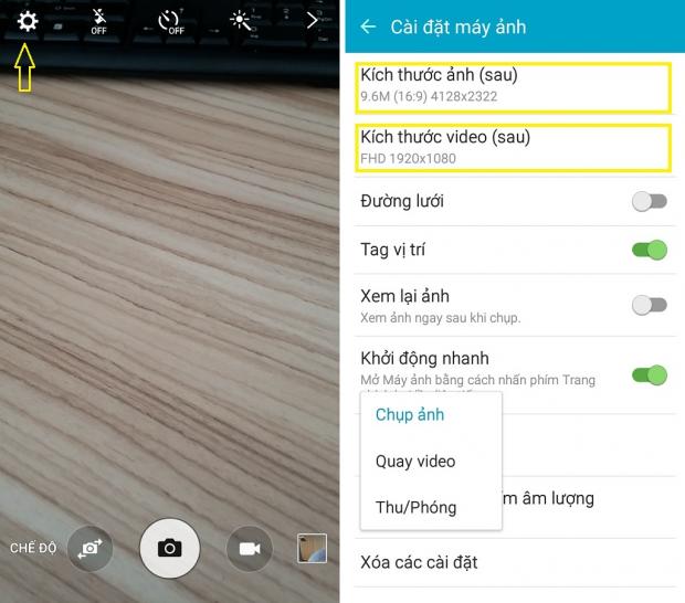 Người dùng còn có thể cài đặt máy ảnh, tùy chọn kích thước ảnh, kích thước video, cũng như chọn phím âm lượng làm nút chụp ảnh, quay video hoặc phóng thu.