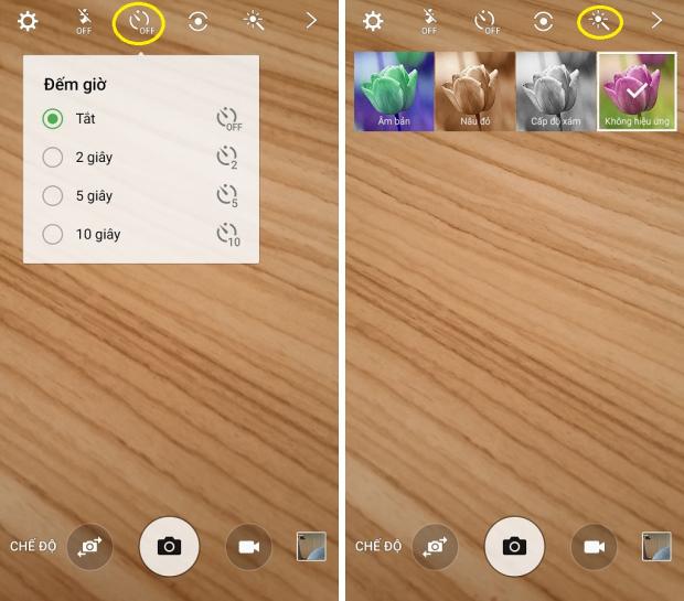 Bên cạnh đó, người dùng có thể cài đặt hẹn giờ chụp ảnh cũng như chọn hiệu ứng cho ảnh.