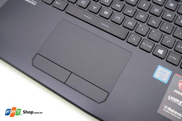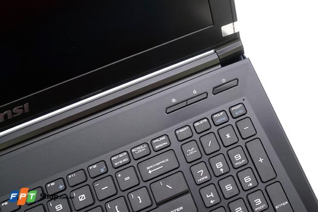 Với GL62, MSI thiết kế bàn phím đặt ngay giữa giúp tổng thể máy nhìn cân đối chứ không đặt lệch sang bên phải như các model của các năm trước nữa. Nút nguồn được bố trí lệch sang một bên và xen giữa đó là bàn phím Steelseries với các phím bấm được sắp xếp cực kỳ hợp lý.
