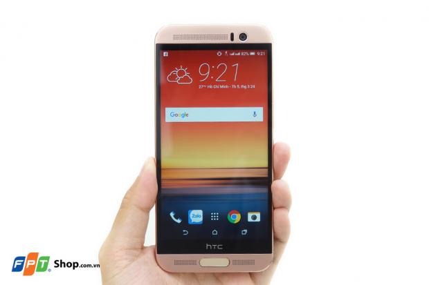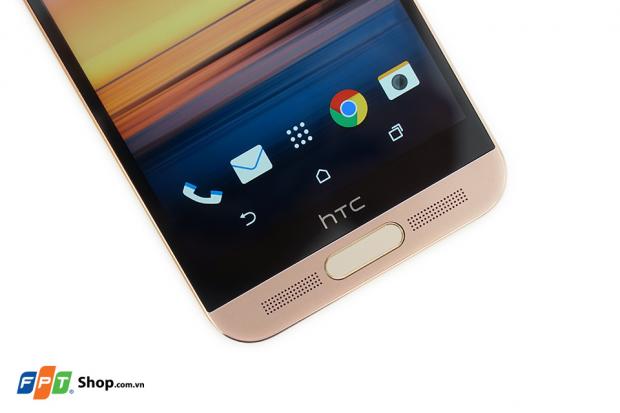 Mặt trước trang bị màn hình 5.2 inch với độ phân giải đạt chuẩn Quad HD điều khá hiếm thấy trên các sản phẩm tầm trung. Do là sản phẩm của năm ngoái nên HTC vẫn đưa các phím cảm ứng vào trong màn hình khiến cho diện tích hiển thị có phần cảm giác bé hơn. Dải loa BoomSound với công nghệ Dolby thêm một cảm biến vân tay ở giữa dải loa dưới không khác One M9+.
