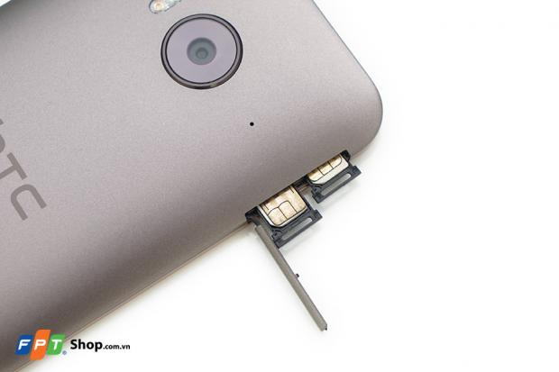 Điểm nổi bật của mặt lưng là camera khủng 20MP, bên trái là đèn flash Led kép 2 tone màu, bên phải là mic quay video. Phía dưới chính là logo HTC.