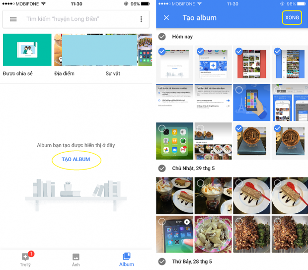 Ngoài ra, bạn có thể tạo album để dễ quản lý hình ảnh, bằng cách bấm chọn tạo album và chọn hình ảnh từ mục ảnh.