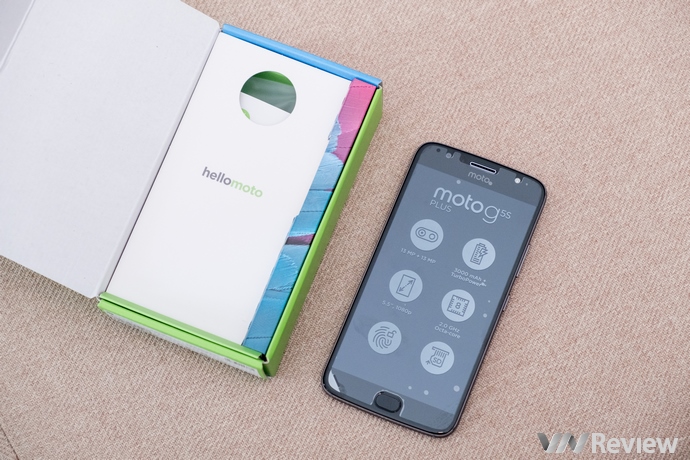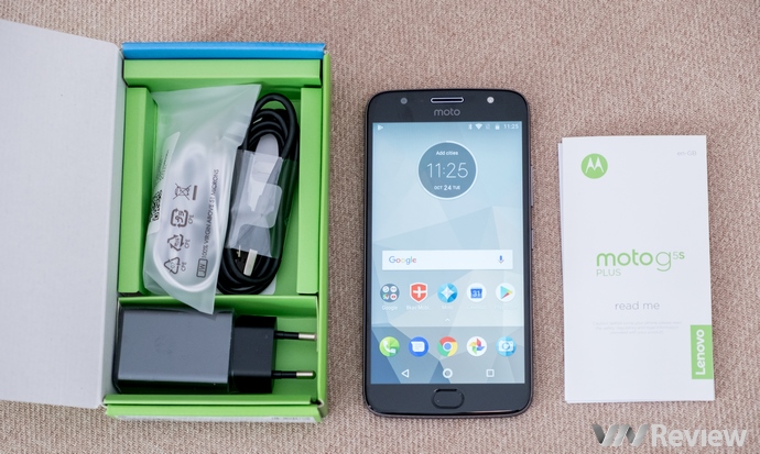 Phiên bản Moto G5s Plus mà VnReview nhận được từ Motorola có màu đen xám, được đóng gói trong một chiếc hộp màu xanh nõn chuối khá lạ mắt. Phụ kiện kèm theo máy cũng ở mức cơ bản, máy sử dụng cổng giao tiếp micro USB thay vì Type-C tiện lợi hơn.