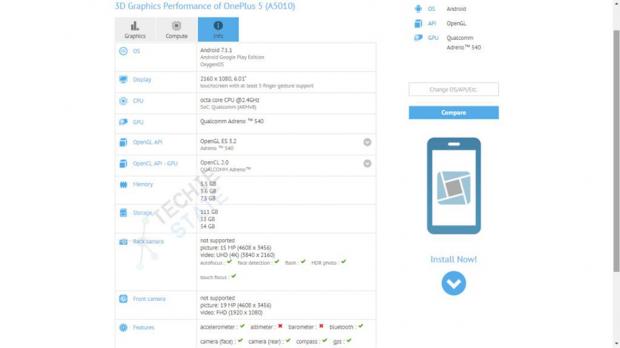 Bên cạnh đó, dữ liệu từ GFXBench còn cho thấy OnePlus 5T sẽ được trang bị vi xử lý mạnh mẽ nhất của Qualcomm ở thời điểm hiện tại là Snapdragon 835, xung nhịp 2.4 GHz, đi kèm là GPU Adreno 540, 2 tùy chọn bộ nhớ RAM 6GB/ 8GB và ROM 64GB/ 128GB. Về camera thì theo những hình ảnh rò rỉ trước đó kết hợp với thông tin trên GFXBench thì rất có thể OnePlus 5T sẽ có cụm camera kép 16MP + 16MP ở mặt lưng, trong khi camera trước của máy sẽ có độ phân giải rất cao là 20MP.