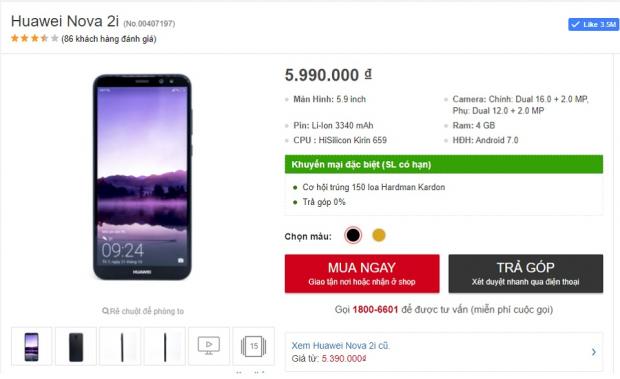 Với mức giá chỉ 5.9 triệu đồng, Huawei Nova 2i có được rất nhiều ưu điểm như sở hữu 4 camera, cấu hình tốt và màn hình FullView ấn tượng, đó đều là những tính năng mà chỉ thường xuất hiện trên những chiếc smartphone cao cấp. Nhưng với Nova 2i, bạn chỉ cần chi mức giá tầm trung là đã có được những tính năng này.