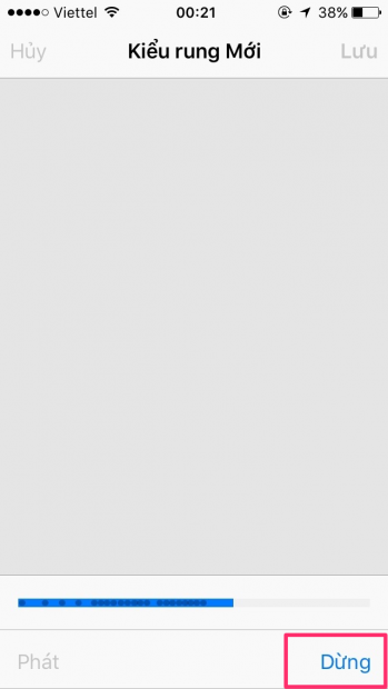 B5: Tại đây người dùng nhấp hoặc giữ để thiết lập kiểu rung, sau đó nhấp chọn 'Dừng'