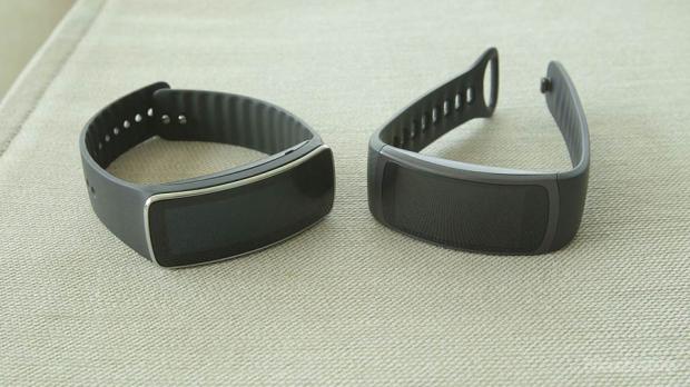 Gear Fit thế hệ đầu bên trái và Gear Fit 2 bên phải. Ảnh: Mashable.