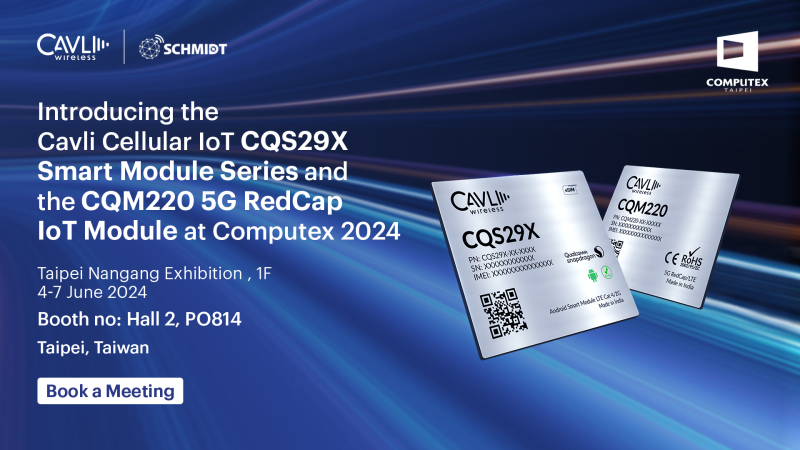 John Mathew, the CEO and the Chief Technology Architect of Cavli Wireless, remarked, “We are thrilled to unveil our latest advancements in cellular IoT technology at Computex 2024. The CQS29X series, with its superior graphics quality and power efficiency, and the CQM220 module, with its robust 5G capabilities, represent our commitment to innovation and excellence in cellular IoT. These products are designed to provide businesses worldwide with seamless connectivity and performance, driving the future of IoT solutions in applications ranging from connected vehicles to smart city initiatives. We are excited to exhibit alongside our distributor partner, SCHMIDT IoT Technology, highlighting our collaborative efforts to bring our cutting-edge IoT solutions to the global market.”