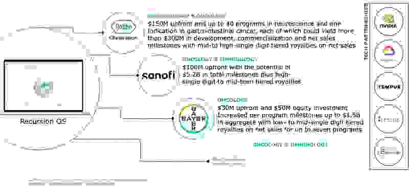 With chemical design and synthesis methods from Exscientia and over 60 petabytes of proprietary data generated in house or licensed from partners like Helix and Tempus, the combined entity will strengthen the Recursion OS to be a first-in-class and best-in-class drug discovery and development platform.