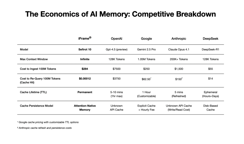 Much like DeepSeek shook the AI ecosystem last year, iFrame’s Asperanto and Sefirot-10 models eliminate the need for retrieval pipelines and fine-tuning altogether, fulfilling a recent prediction made by former Google CEO Eric Schmidt that infinite context models are on the horizon, aiming to reshape our understanding of agentic AI applications.