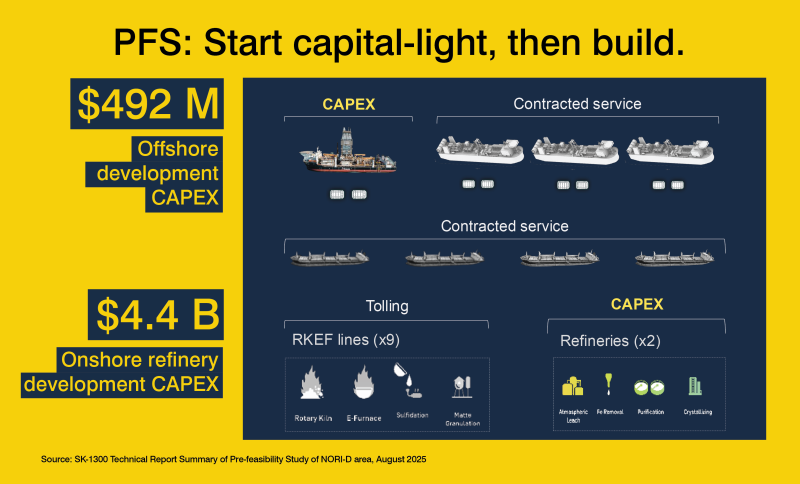 The Pre-Feasibility Study assumes that developing and operating the NORI-D Project is not only commercially and technically achievable but can begin with a capital-light approach by leveraging existing offshore and onshore infrastructure.