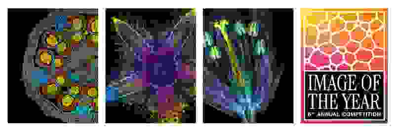 Image Attribution, from left to right: Cross-section of a Cosmic Orange aster flower with pollen grains maturing inside anthers. Captured by Igor Siwanowicz of the United States 2024. Nervous system of a juvenile sea star (Patiria miniata) about 1 cm wide. Captured by Laurent Formery of the United States 2022. Arabidopsis thaliana flower with pollen tubes growing through the pistil. Captured by Jan Martinek of Czech Republic 2021.