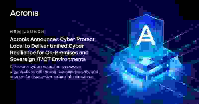 SCHAFFHAUSEN, Switzerland, Oct. 29, 2025 (GLOBE NEWSWIRE) -- Acronis, a global leader in cybersecurity and data protection, today announced the launch of Acronis Cyber Protect Local, a solution delivering natively integrated cyber resilience for on-premises, sovereign private cloud, and air-gapped IT and operational technology (OT) environments. Designed for organizations where cloud deployment is not an option, the solution combines robust backup, rapid recovery, cybersecurity, and endpoint management in a single platform, enabling agile, resilient, and compliant IT and OT operations while reducing costs and operational complexity.