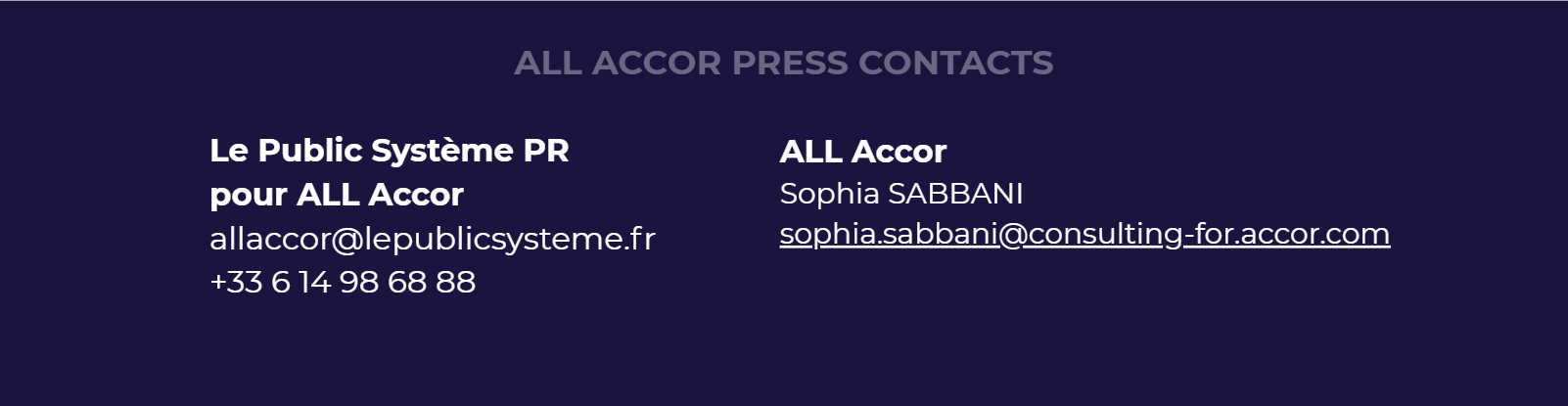 ALL ACCOR ANNOUNCES THE RETURN OF THE