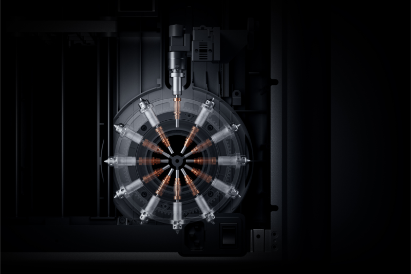 The Palette 300, a recipient of the 2026 iF Design Award and MUSE Gold Award, addresses the core inefficiencies of desktop 3D printing. Unlike traditional systems that rely on high-waste 'purge towers,' the Palette 300 utilizes an OmniElement™ 12-nozzle automatic swapping mechanism. By transitioning directly between 12 independently heated nozzles, the system enables the simultaneous use of 12 distinct materials and up to 36-color printing, reducing material waste while drastically increasing switching speeds.