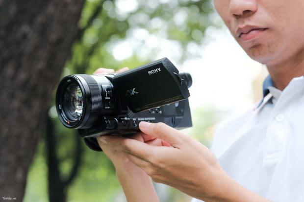 Khác biệt dễ nhận thấy nhất so với AX100 chính là báng cầm tay phải lớn hơn nhờ Sony đã trang bị cho AX700 phần cứng mới. Ống kính của máy được mở rộng với zoom quang học 18X so với 12X của AX100, tương đương với tiêu cự quy đổi 29 - 384mm f/2.8-4.5. Với khẩu độ cũng như tiêu cự thì nó không siêu khủng như dòng máy ảnh RX10 series nhưng lợi thế là toàn bộ cấu trúc dịch chuyển các thấu kính khi zoom đều nằm trong thân máy. Điều này giúp hiệu suất ống kính hoạt động tốt, lấy nét nhanh hơn, ngăn bụi cũng như giảm tác động môi trường tốt hơn. Đây rõ ràng là thế mạnh rất lớn của máy quay chuyên dụng.