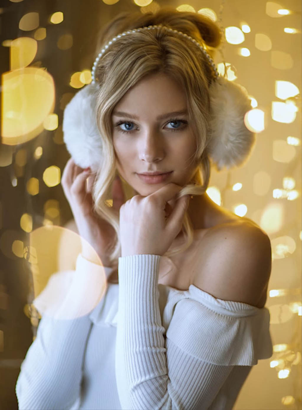 Với chiếc máy ảnh Canon 5D Mark III DSLR, ống kính Canon 85mm f / 1.2L, các đoạn dây đèn được treo trên trần tạo không khí Giáng Sinh ấm cúng cùng người mẫu Emily, Irene Rudnyk đã tạo nên một bộ ảnh Noel tuyệt vời không kém bất kỳ một nơi nào. Ngoài ra, trong đoạn video hậu trường Irene còn hướng dẫn cách cô trang trí căn phòng và lời khuyên giúp bạn có được một bộ ảnh lung linh ngay trong chính căn phòng của mình, ví dụ như nên đứng gần cửa sổ để thấy được sự tươgn phản giữa ánh sáng lạnh bên ngoài và ánh đèn vàng ấm cúng bên trong.