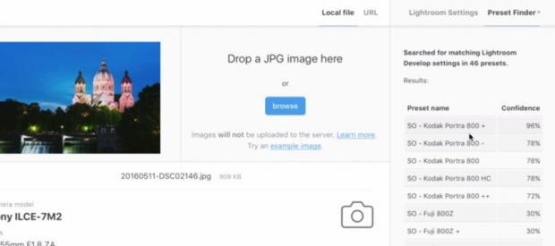 Với tính năng Preset Finder, đây là một sự hỗ trợ rất tuyệt khi bạn muốn tìm một preset cũ ở một bức ảnh cũ rinh rích nào đấy mà bạn bỗng dưng tìm thấy trong kho ảnh của bạn. Bạn chỉ việc truy cập vào trang web này, upload lên, và để nó tự tính toán cho ra kết quả chính xác nhất.