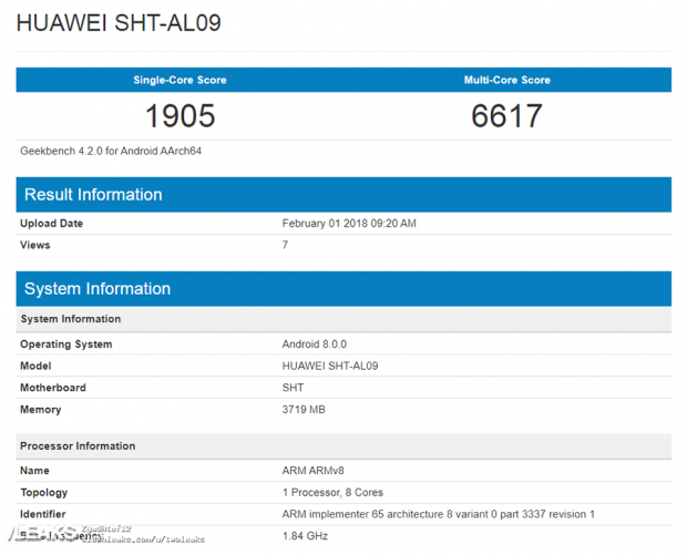 Cụ thể, theo bảng điểm mới được đăng tải trên trang mạng Geekbench thì Huawei MediaPad 5 với tên mã SHT-AL09 sẽ đi kèm với dung lượng RAM 4GB và sức mạnh xử lý của máy được cung cấp bởi con chip 8 nhân, xung nhịp 1.84 GHz, nhiều khả năng đây chính là chipset cao cấp Kirin 960 của Huawei như những thông tin rò rỉ trước đó. Chưa hết, ở lần rò rỉ này thì Huawei MediaPad 5 được phát hiện đang hoạt động trên nền tảng Android 8.0 Oreo mới nhất của Google.Về hiệu năng, có thể thấy điểm số mà Huawei MediaPad 5 đạt trên Geekbench là khá ấn tượng khi ở bài test điểm đơn nhân thì máy đạt 1,905 điểm, còn ở bài thử nghiệm đa lõi là đạt 6,617 điểm. Và dù Geekbench không tiết lộ các thông tin như màn hình hay pin của máy nhưng theo các thông tin rò rỉ trước đây, MediaPad 5 sẽ được trang bị màn hình 8.4 inch, độ phân giải Quad-HD (2,560x1,440 pixel) và cung cấp năng lượng cho máy là viên pin 4,780 mAh.
