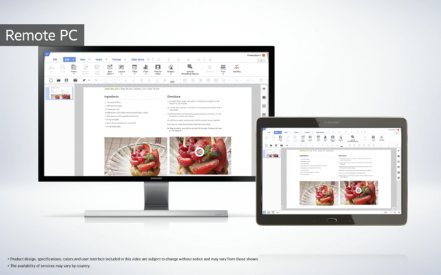 Có lẽ, những hình ảnh mới được lấy từ một đoạn video quảng cáo chính thức. Theo đó, Galaxy Tab S 10.5 mang một thiết kế mảnh mai, chỉ dày 6.6mm (thậm chí, có những tin đồn cho rằng Tab S 8.4 còn mỏng hơn, chỉ 6,5 mm). Tab S 10.5 được trang bị chế độ Remote PC, và cho phép người dùng thực hiện cuộc gọi bằng cách đồng bộ hóa tiết bị với smartphone của họ.