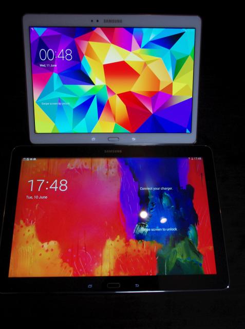 Cả Galaxy Tab S 10.5 và Galaxy Tab S 8.4 đều được trang bị màn hình AMOLED 1.600 x 2.560 pixel, vi xử lý Exynos 5 Octa 5420 của Samsung, RAM 3GB, camera sau 8MP, Samsung cũng cung cấp cảm biến vân tay trên thiết bị, và đương nhiên Android 4.4 KitKat mới nhất được cài sẵn.