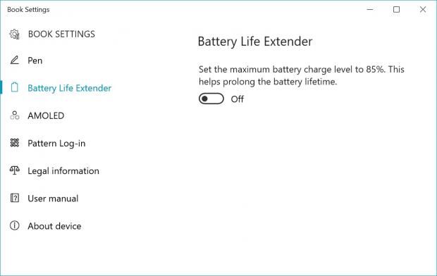 Theo đó một ứng dụng với tên gọi Book Setting đã bất ngờ xuất hiện trên Windows Store, ứng dụng có cách danh mục tùy chọn như 'Pen, Battery Life Extender, AMOLED, Pattern Log-in, User manual,...'.
