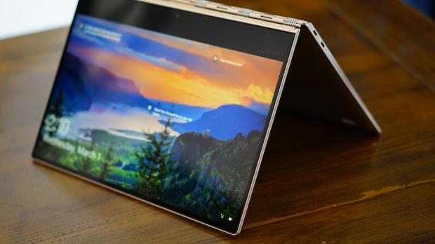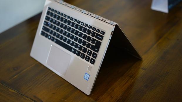 Thế hệ Yoga 910 cũng được trang bị thiết kế bản lề kiểu dây đồng hồ sang trọng đặc trưng của dòng laptop chuyển đổi Yoga với cơ chế sử dụng linh hoạt, cho phép người dùng sử dụng ở nhiều chế độ khác nhau từ việc sửu dụng như 1 chiếc laptop bình thường đến trình chiều ở chế độ đứng, xem video ở chế độ Tent hay sử dụng như một mẫu máy tính bảng.