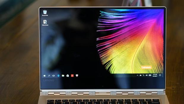 Nhờ thiết kế viền siêu mỏng nên dù có màn hình 13.9-inch nhưng kích thước tổng thể của Yoga 910 chỉ tương đương các mẫu laptop 13- inch. Đây cũng là lý do buộc Lenovo phải di chuyển vị trí đặt camera trên Yoga 910 xuống cạnh dưới của màn hình. Phiên bản Yoga 910 tại Việt Nam sẽ được trang bị màn hình độ phân giải 'khủng' 4K sử dụng công nghệ IPS LCD giúp hình ảnh hiển thị sắt nét, đồng thời đạt tới 100% gam màu RGB cho màu sắc phong phú hơn khi xem ảnh hoặc video. Trải nghiệm nhanh cũng cho thấy Yoga 910 cho chất lượng hiển thị cực tốt, màu sắc tái tạo trung thực, góc nhìn rộng, độ tương phản cao.