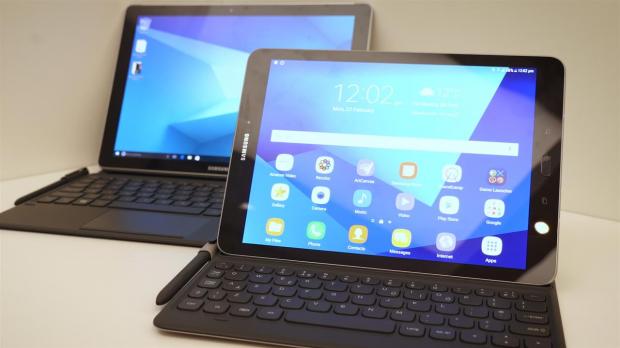 Ngược lại, Tab S3 với khung kim loại khá chắc chắn và 2 mặt kính sang trọng khiến chiếc máy thích hợp hơn với phái mạnh, đặc biết với các phụ kiện bàn phím và bút cảm ứng đi cùng, có lẽ Samsung đang hướng đến các đối tượng doanh nhân hay di chuyển nhiều.