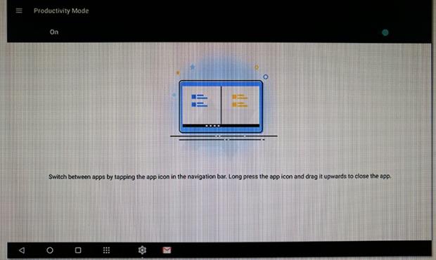 Để đóng một ứng dụng, chỉ cần kéo biểu tượng của nó lên trên, nếu bạn không làm vậy thì các ứng dụng sẽ được lưu giữ trong bộ nhớ. Productivity Mode cũng di chuyển tất cả các nút điều hướng Android sang một bên màn hình để truy cập bằng ngón tay cái dễ dàng hơn. Và cũng có nút Chặn ứng dụng dành riêng trên thanh điều hướng.