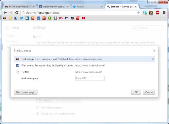 Dường như với Chrome, khái niệm trang chủ không giống với các trình duyệt khác khi bạn có thể cài đặt nhiều trang chủ bằng các bước sau: