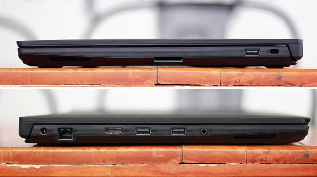 Máy sở hữu hơi ít cổng kết nối, chỉ có 3 cổng USB, 1 cổng Ethernet, 1 cổng micro HDMI, 1 khe cắm thẻ nhớ SD và 1 giắc âm thanh 3.5 mm. Laptop gaming mà, cần gì nhiều lỗ đúng không? Cứ đủ lỗ cắm chuột với bàn phím và dây mạng là ngon rồi nhỉ.