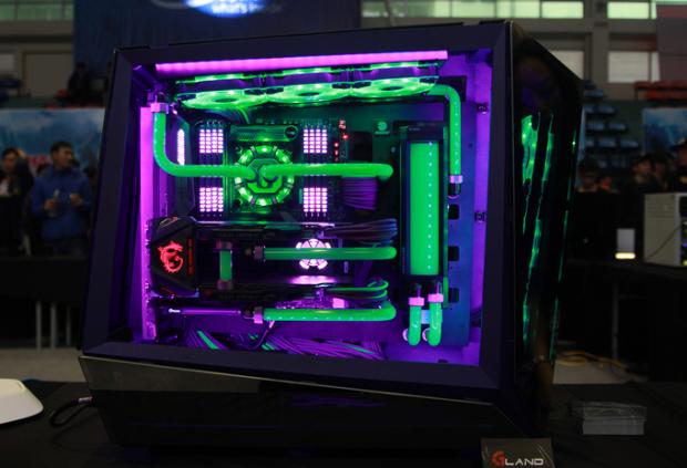 Nổi bật so với các đối thủ ở ngay cạnh, dàn máy tính này sở hữu một màu vàng-đen đẹp mắt từ trong ra ngoài. Các linh kiện được sắp xếp khéo léo, khoa học và được làm nổi bật bởi hệ thống tản nhiệt nước phức tạp.